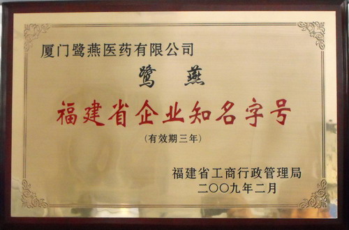 近日, “鷺燕”字號被福建省工商局認(rèn)定為2008年度福建省企業(yè)知名字號,這是繼“鷺燕”商標(biāo)及圖被福建省工商局認(rèn)定為福建省著名商標(biāo)后的又一榮譽(yù),也是對鷺燕集團(tuán)多年來堅(jiān)持依法規(guī)范、誠信經(jīng)營的肯定和鼓勵(lì)。