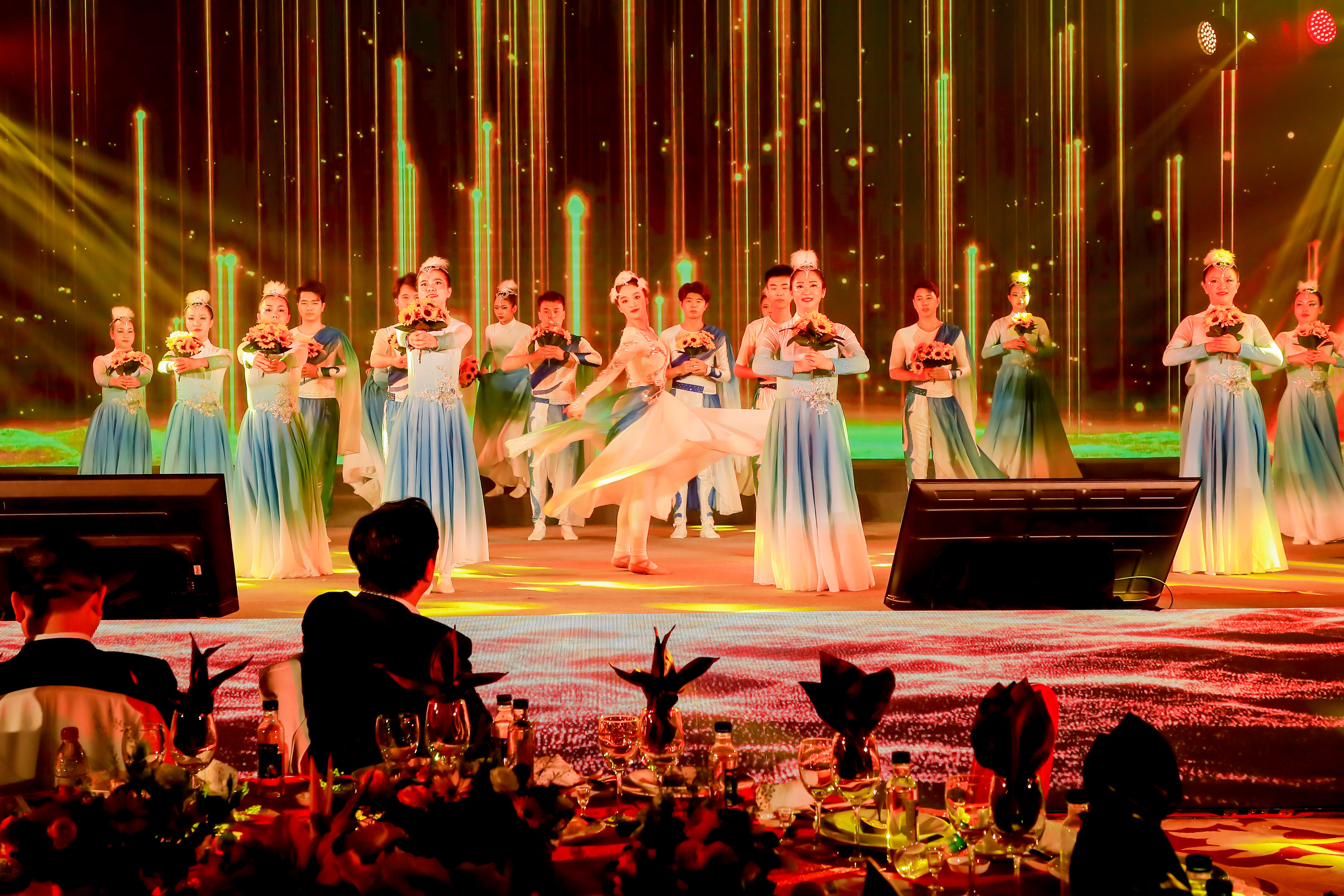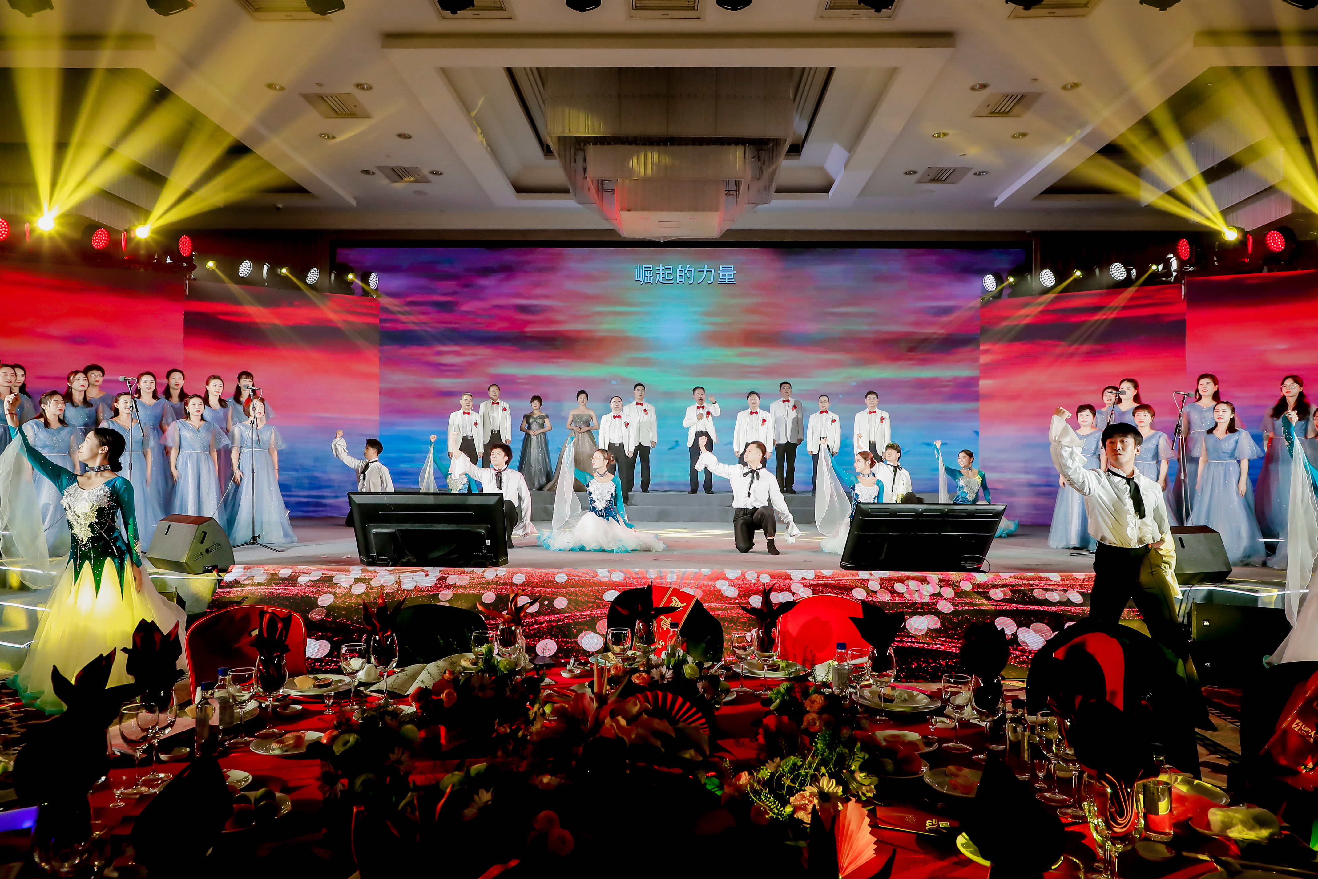除了每個(gè)篇章的動(dòng)人講述,慶典大會(huì)過程中還穿插著歌曲串燒、原創(chuàng)舞蹈《鷺燕騰飛》、情景劇等精彩絕倫的節(jié)目表演,演繹出一場(chǎng)情懷與才華共賞的視聽盛宴。