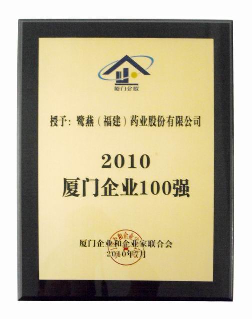 2010年6月28日,“2010廈門企業(yè)100強(qiáng)”榜單正式出爐,鷺燕(福建)集團(tuán)依托穩(wěn)健經(jīng)營,實(shí)現(xiàn)經(jīng)營業(yè)績穩(wěn)步發(fā)展,位列榜單第37位,同比去年排名前進(jìn)12位。自2006年參加廈門企業(yè)百強(qiáng)評選以來,鷺燕集團(tuán)已連續(xù)5年位列百強(qiáng)企業(yè)榜單。