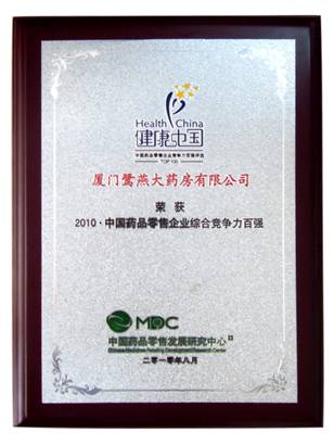 由中國(guó)藥品零售發(fā)展研究中心(MDC)、中國(guó)醫(yī)藥企業(yè)合作與發(fā)展組織(CPEO)、中國(guó)藥品品牌評(píng)審委員會(huì)主辦的“健康中國(guó)?2010中國(guó)藥品品牌評(píng)選活動(dòng)”,經(jīng)過為期半年的品牌征集、品牌入圍和專家評(píng)選階段,于6月21日公布了“健康中國(guó)?2010中國(guó)藥品品牌榜”榜單,鷺燕大藥房榮登“健康中國(guó)?2010?中國(guó)藥品零售企業(yè)綜合競(jìng)爭(zhēng)力百?gòu)?qiáng)”企業(yè)。 |