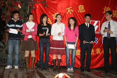 下午4:00整,在《好日子》歡快的歌舞中,表彰聯(lián)歡會正式拉開了序幕。會上共頒發(fā)了九個獎項,分別是最佳員工獎6人,最佳藥師獎2人,最佳新人獎、最佳參與獎、最佳貢獻獎各1人,最佳店長獎3人,最佳門店獎2個,還有兩個特殊的獎項:一是半年度毛利考核指標完成相對值、絕對值各前3名的門店,二是2000年8月前入職的老員工獎。頒獎過程中還穿插了員工們自編、自導、自演的小節(jié)目。他們用優(yōu)美的舞姿、甜美的歌聲、俏皮搞笑的小品為杰出的先進代表們喝彩、祝福,現(xiàn)場氣氛非常活躍,高潮迭起,一張張如花的笑靨遨游在一片歡樂的海洋……最后,在《感恩的心》的優(yōu)美的旋律和熱烈的掌聲中,活動暫告一個段落。