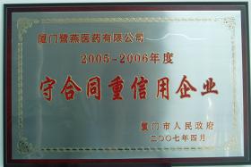 經(jīng)過層層選拔、評審,廈門鷺燕醫(yī)藥有限公司和廈門鷺燕大藥房有限公司雙雙榮獲了“2005-2006年度守合同重信用企業(yè)”稱號,這是政府權(quán)威部門對我集團(tuán)合同管理工作的充分肯定。